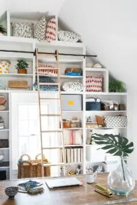 Utilizing space under the bed definitely takes advantage of horizontal storage, but it’s also important to consider verticality in how things are packed and stored. For items that are not commonly used, storing them in higher places can open up plenty of space for other storage opportunities in the room.